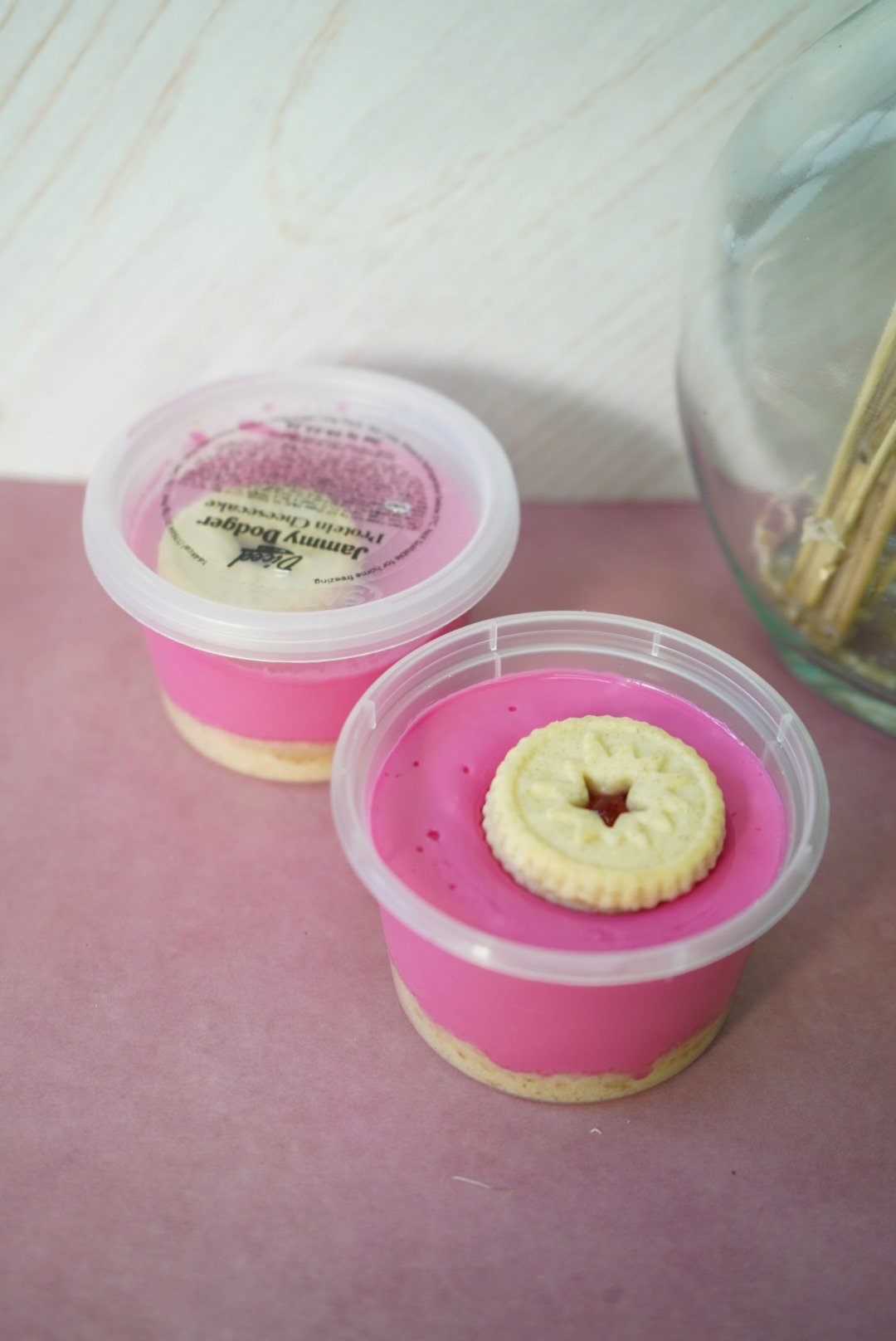 Low fat cream cheese (MILK), Greek yoghurt (MILK), digestive biscuit crumb (WHEAT), vanilla whey protein (MILK), Jammy Dodger crumb (WHEAT, SOYA), raspberry jam filling