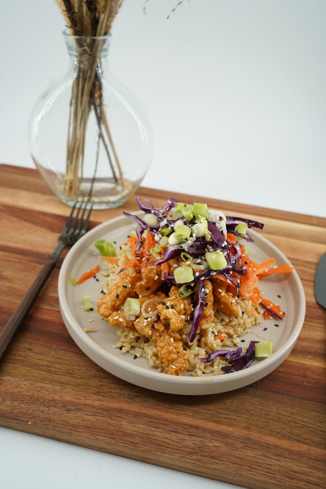 Salt & Pepper Shredded Chicken (Chicken Breast (61%), WHEAT Flour, Modified Tapioca Starch, Salt, Starches [Potato, Corn], Onion, Black Pepper, SESAME Seeds, Sugar, Garlic, Raising Agents, Spice Extracts, Rapeseed Oil, Yeast Extract [contains WHEAT], Dextrin, Stabiliser, Acidity Regulator, Chilli Flakes), Rice